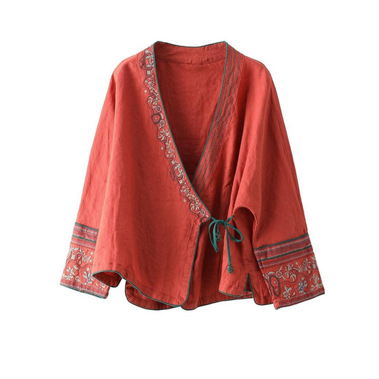 Myrthe | Dames Linnen Overhemd met Borduursel en Lange Mouwen