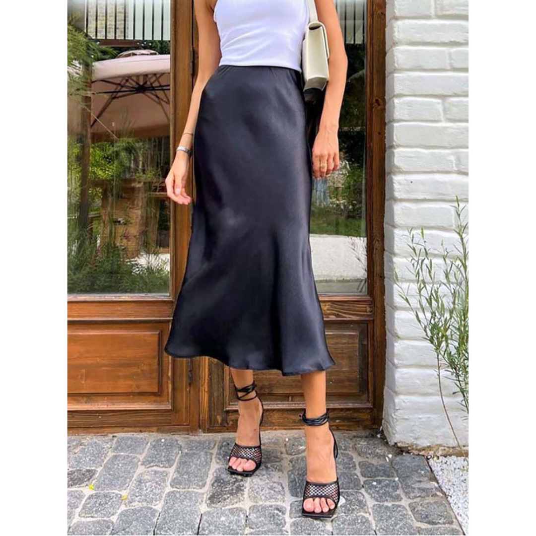 Amelie | Dames Satijnen Midirok met Elastische Taille | Satijnen Rok