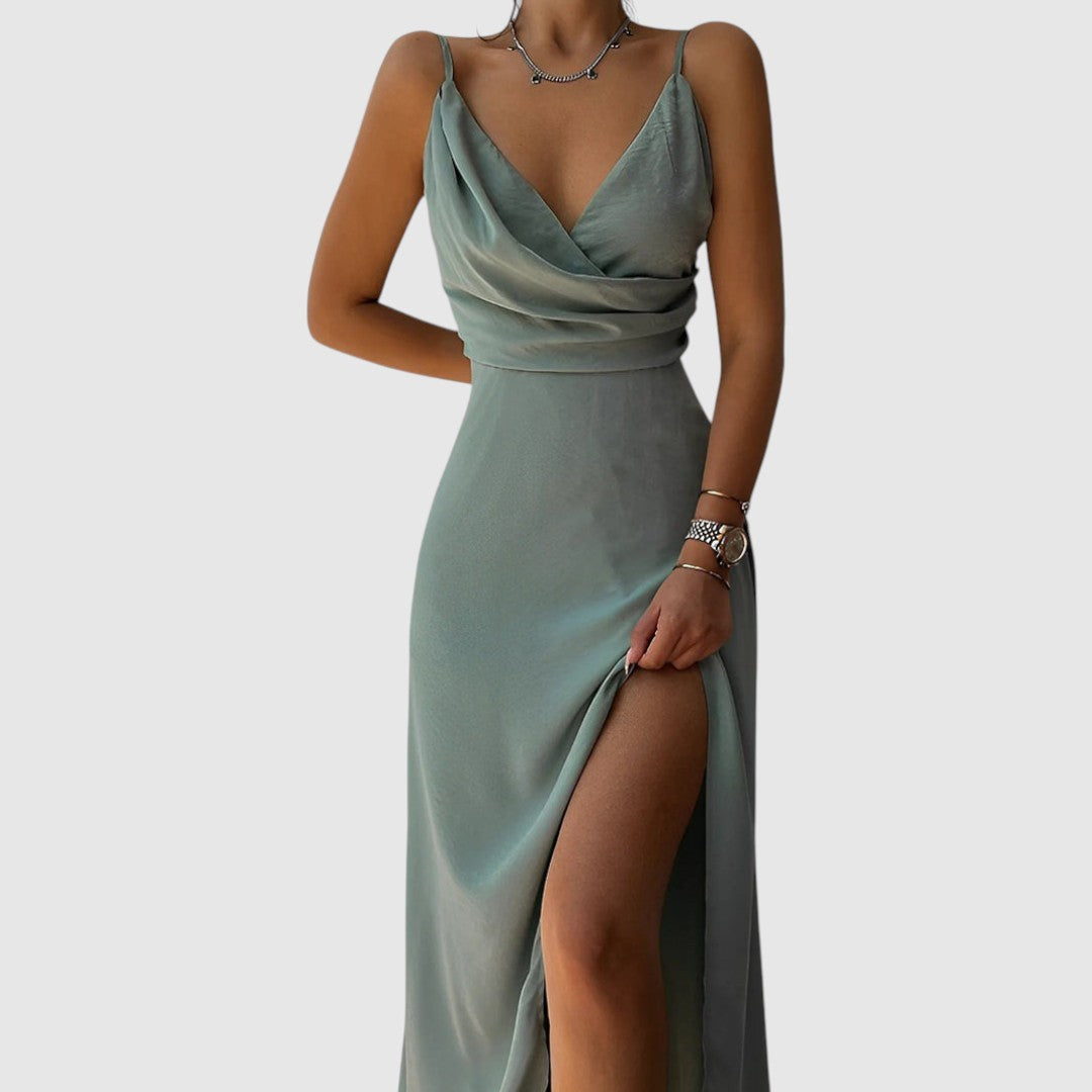 Imke | Dames Mouwloze V-Hals Jurk | Midi-Jurk met Open Rug