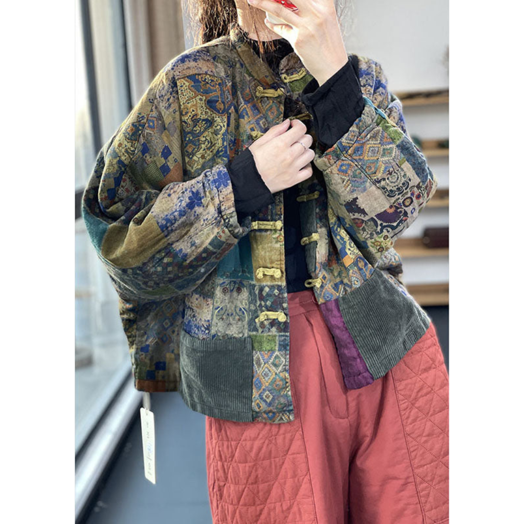 Jolie | Dames Vintage Jas met Print en Knoopsluiting & Lange Mouwen